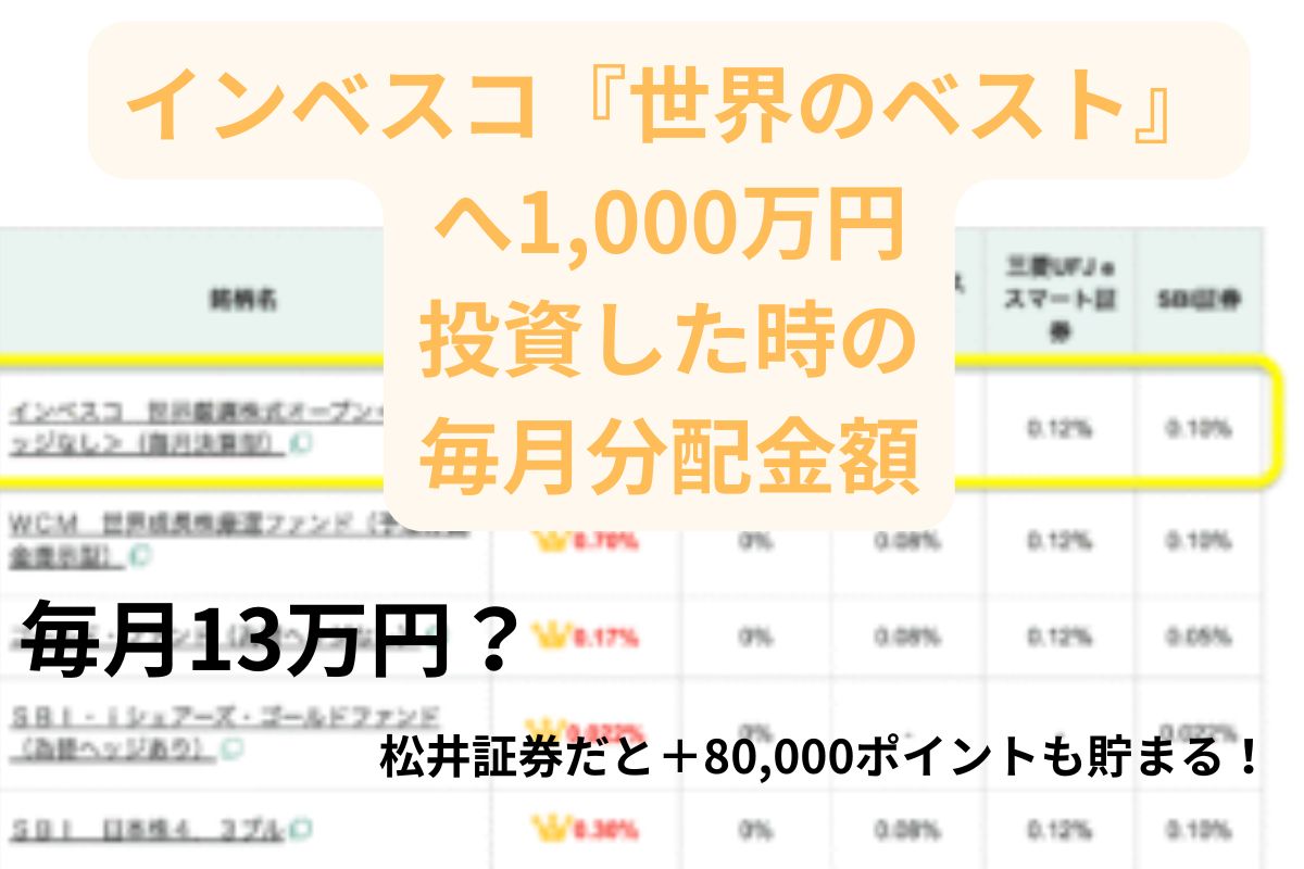 松井証券でインベスコ「世界のベスト」を1,000万円分運用した時のポイント還元と毎月分配金額