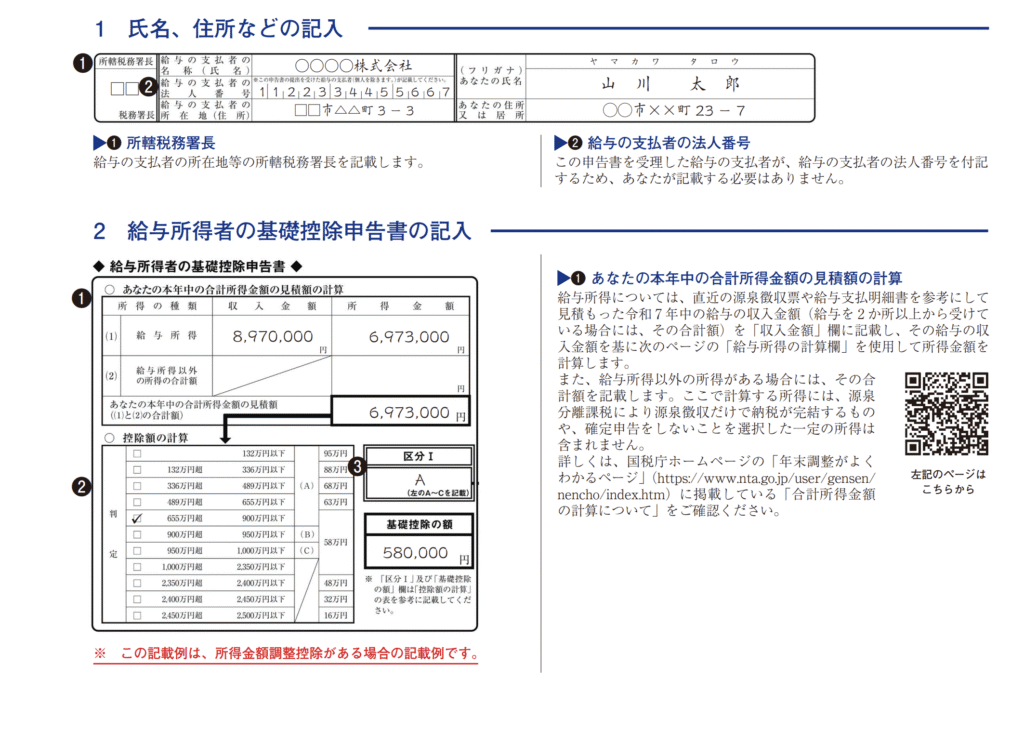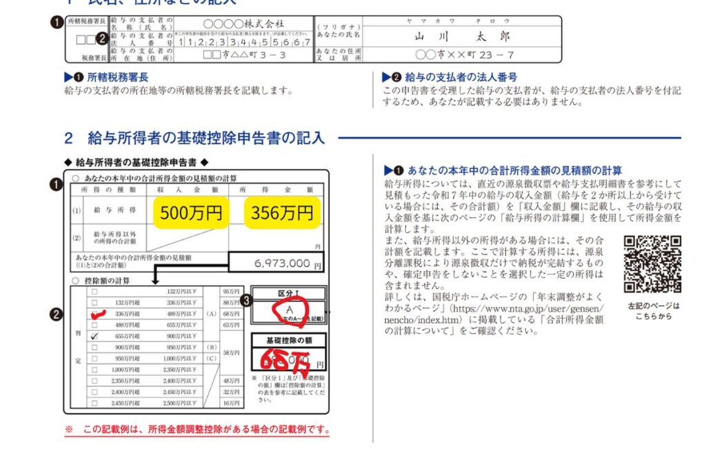 令和7年分 給与所得控除の基礎控除申告書の記入方法