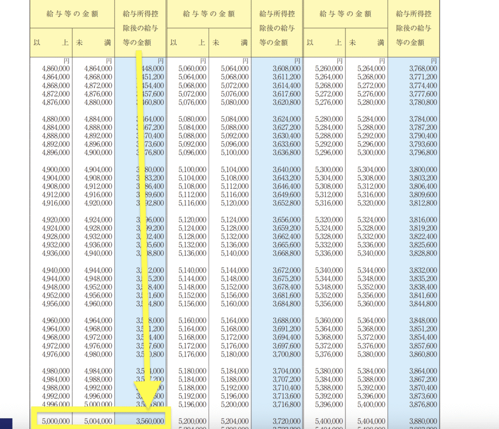 国税庁のサイトには「令和7年分の年末調整等のための給与所得控除後の給与等の金額の表」を参考にする事もできます。