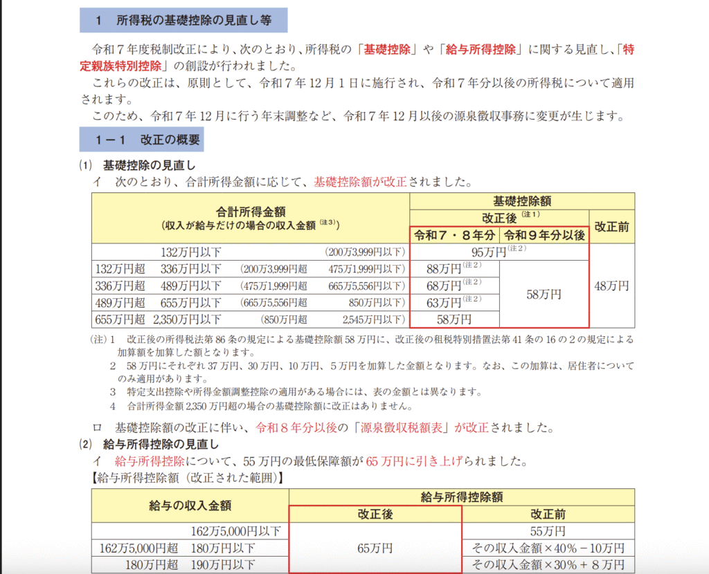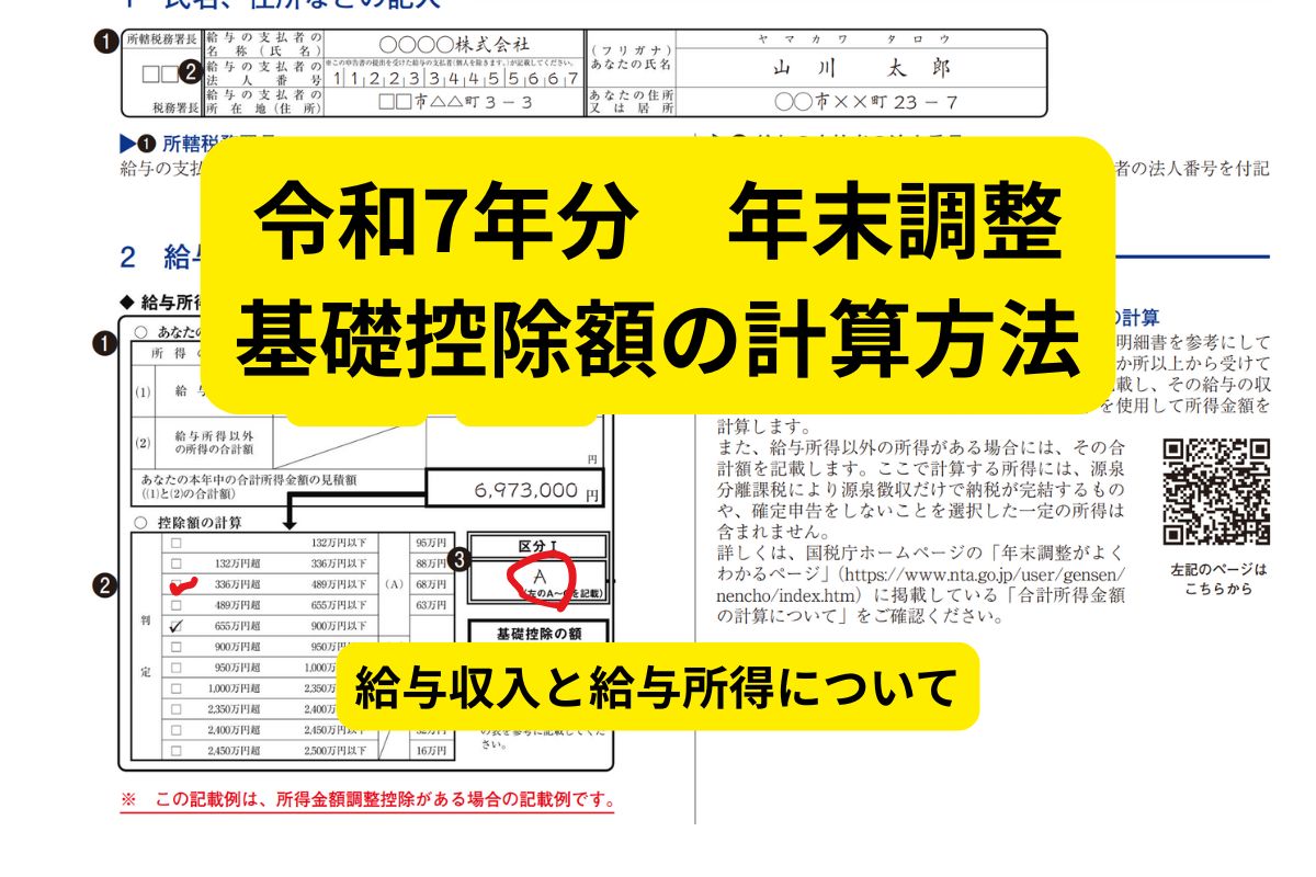 令和7年度(2025年)は税制改正により所得税の「基礎控除」と「給与所得控除」の見直しが行われました。