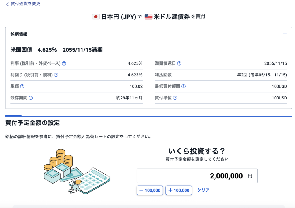 個人で証券会社から購入できる米国債を探してみると数件販売している商品がありました。