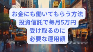 投資信託 投資信託でお金に働いてもらう方法。毎月5万円受け取る為に必要な運用額と運用先 会社員としての毎月のお給料以外にも収入の「柱」があると非常に嬉しいですよね。夫婦共働きの2馬力世帯だと収入も2カ所から入ってくるので、怪我や病気で働けない期間はどちらかの収入で助け合うことも可能です。それでも「給与収入」だけでは『物価上昇』... 2025.11.02 投資信託